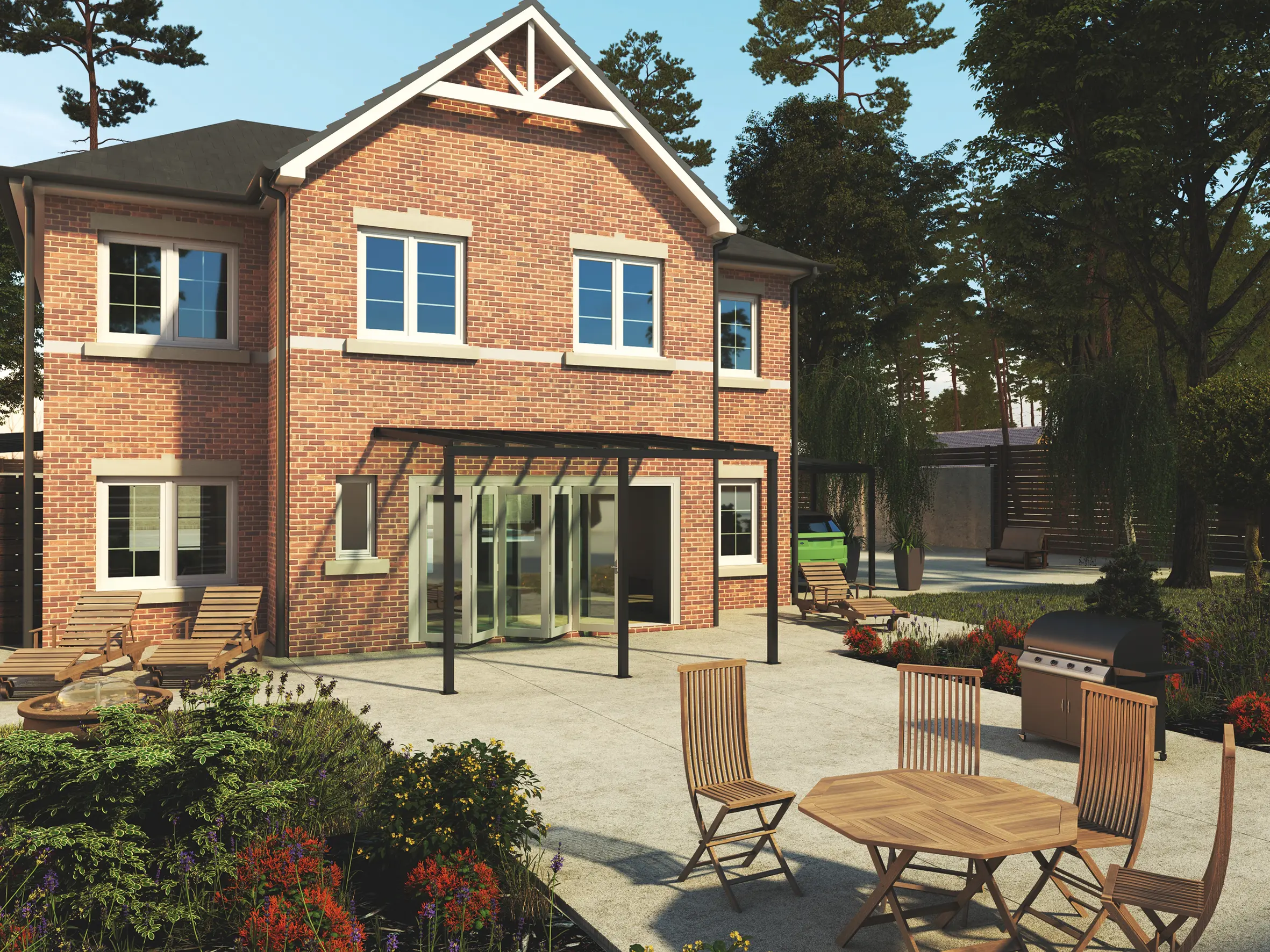 Extend your living area into the garden with a comfortable outdoor seating space. Ideal for relaxing, reading, or spending time with family in a sheltered environment.